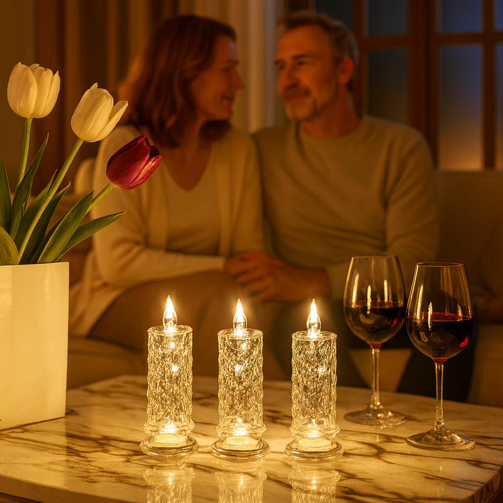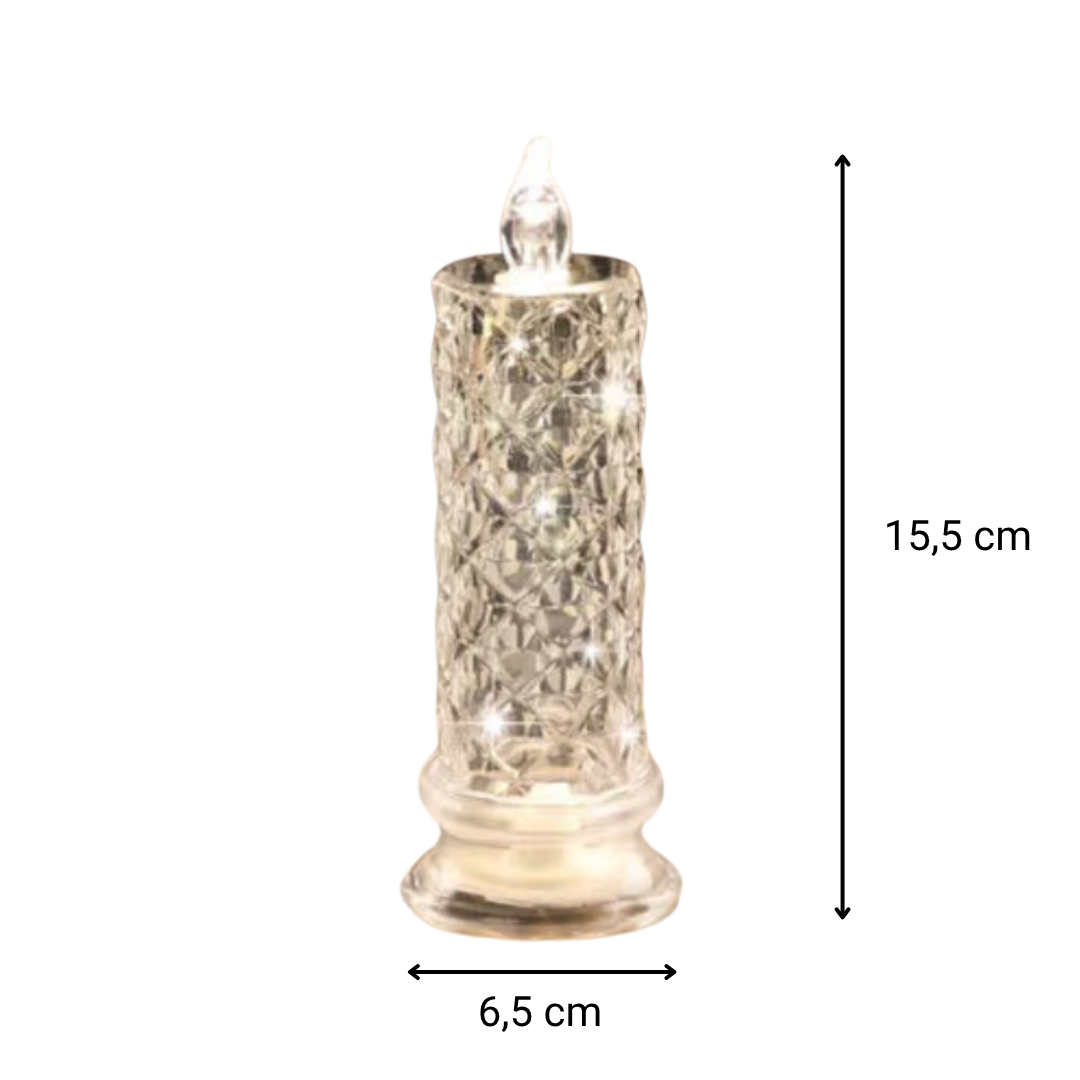 Dieses LED Kristall Kerzen Licht kombiniert luxuriöses Kristalldesign mit sicherer LED-Technik – ideal für stimmungsvolle Akzente ganz ohne offene Flamme. Ob auf Beistelltisch, Sideboard oder zur Dekoration bei besonderen Anlässen – es bringt Glanz und Wärme in jeden Raum.